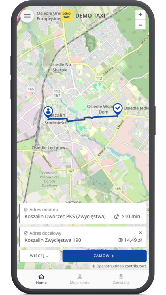 Posiadanie Aplikacji Webowej do zamawiania taxi daje dodatkowo niezależność od sklepów, które w każdej chwili mogą zamienić wymagania dotyczące aplikacji czy nawet wprowadzić nowe zasady i opłaty związane z umieszczeniem aplikacji w sklepie.